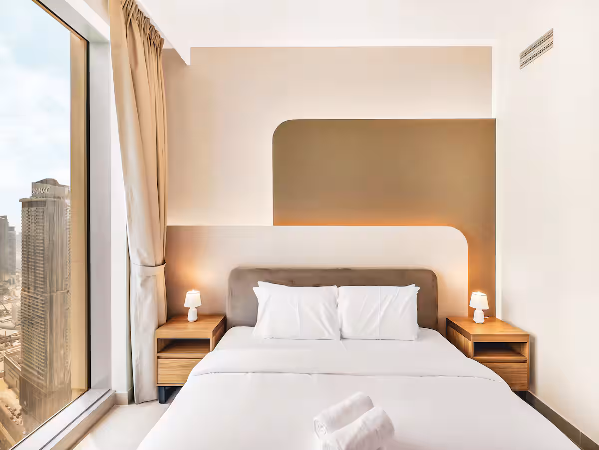 • Breathtaking Views: Enjoy stunning, direct views of the Burj Khalifa and Downtown Dubai from all bedrooms, the living room, and the private balcony.